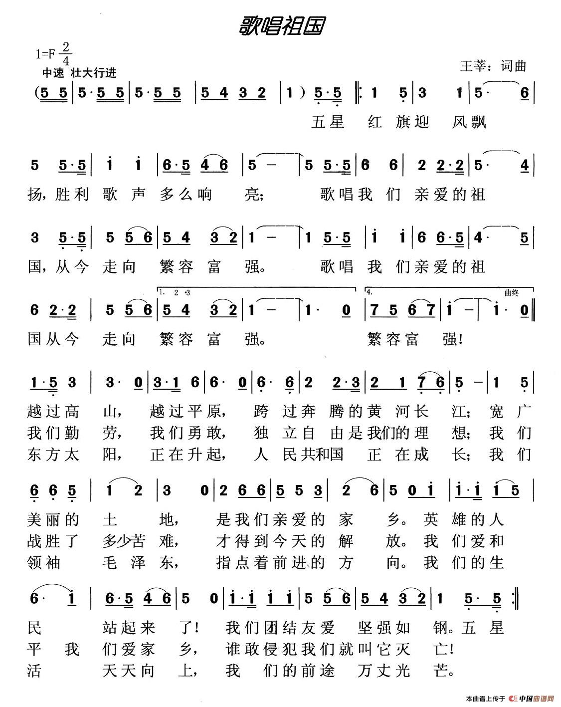 《歌唱祖国》歌谱