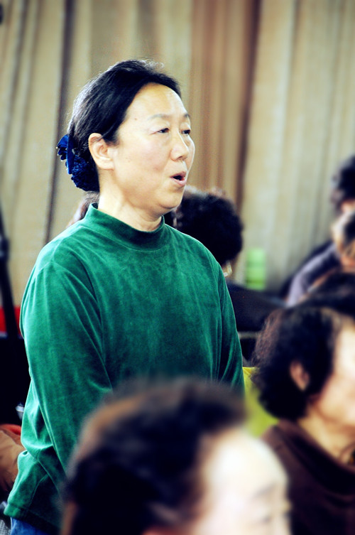 课程中一位女同志被老师点名起立示范歌唱