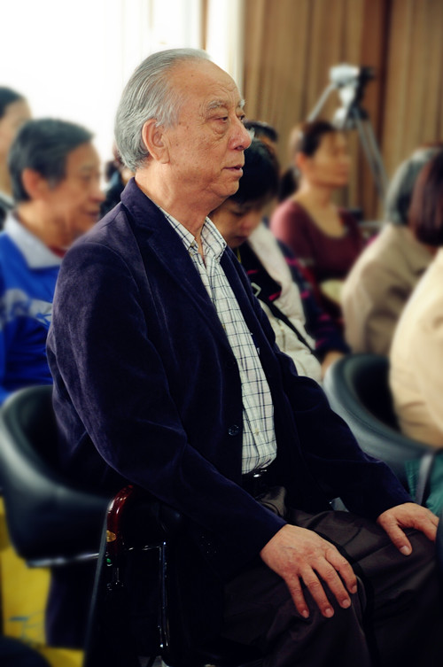 银发苍苍的老同志在听讲