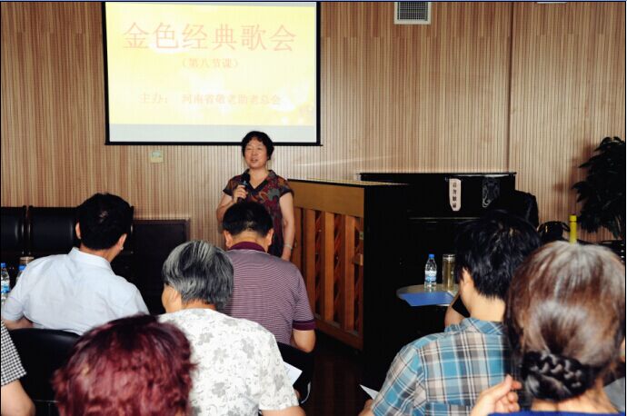 《金色经典歌会》唱歌培训班是河南省敬老助老总会为喜欢唱歌愿意学唱的老同志特别举办的,旨在通过教唱、学唱,让更多的老同志想唱、会唱、敢唱,唱出好心情,唱出好身体。培训班定于每周四下午在河南省老干部活动中心举办,向老同志免费开放,欢迎老同志们积极报名,热情参加。